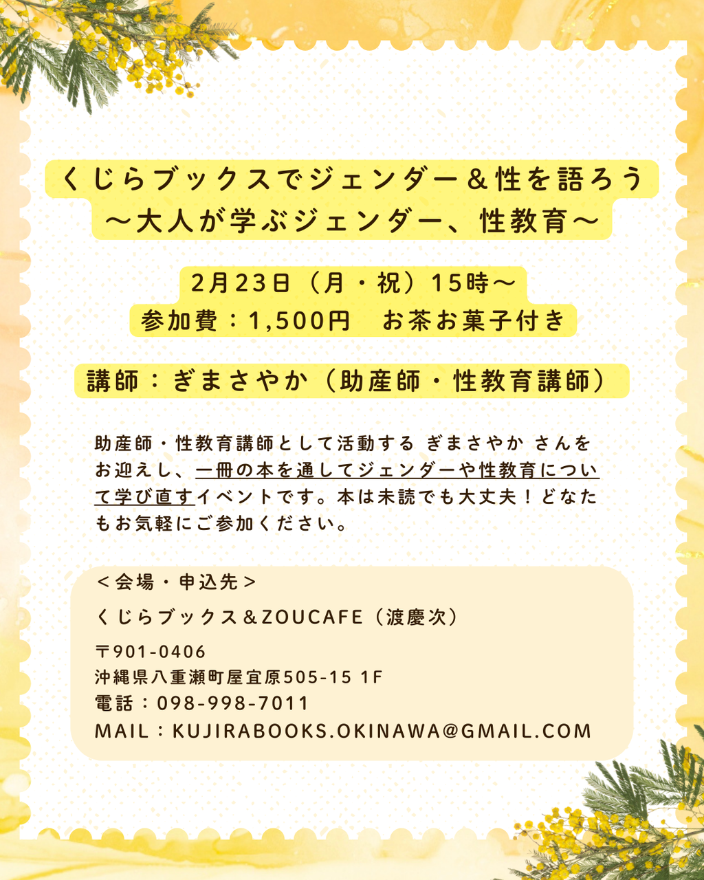 TEL:098-998-7011 メール:kujirabooks.okinawa@gmail.com(渡慶次)